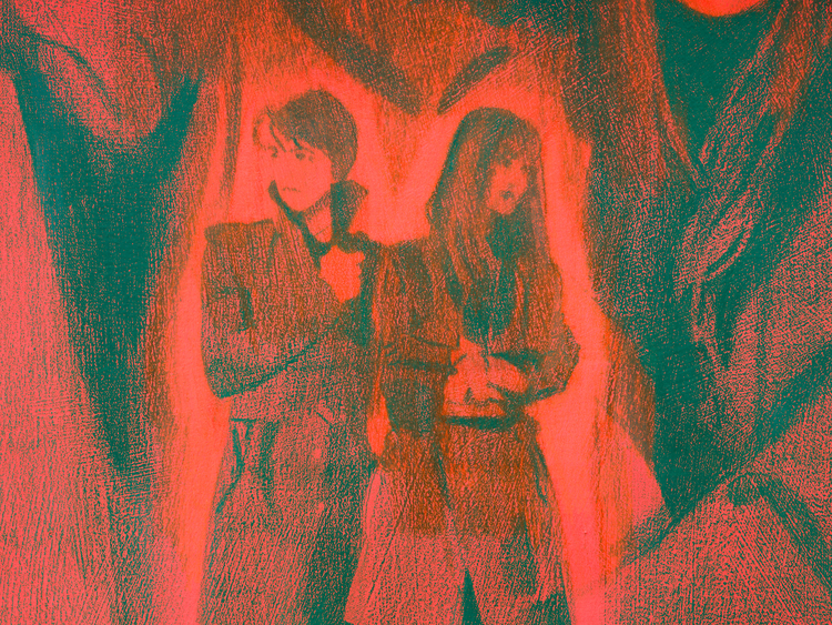 The cinematic cast of these works, be they personal or conceptual, may be the ultimate showstopper in the exhibition; the medium is a message here. The act of drawing is often relegated to the preparatory, a rehearsal or schema for something not fully realized. The grandiosity with which Taurins builds the drawings in her exhibition is unmistakably final. This is a closed loop into which all the stuff of a life is poured. An image impregnating itself, a color-blocked toddler, face undefined but for a pair of eyes peering out from a fecund landscape, sunsets and blue skies piercing idyllic figures like a cut to rolling credits on a screen—this world is self-propagating and needs no formal advance to be fully realized. Taurins’ mark making is unconstrained by expectation; it shoulders a universe of its own.